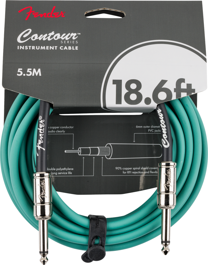 Los cables para instrumentos Fender Contour™ Series combinan el inconfundible estilo Fender con una construcción sólida, que incluye blindaje en espiral y conectores niquelados duraderos, ideales para cualquier entorno musical, ya sea en el escenario o en el estudio.